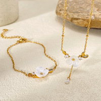 Novo Aço Inoxidável Pulseira De Ouro Colar Camélia Set Moda Nicho Design Branco Flor Pingente Jóias Presente