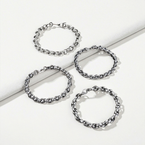 ใหม่เครื่องประดับสแตนเลสบุรุษ Link สร้อยข้อมือมือสร้อยข้อมือเงิน Designs เรขาคณิตสร้อยข้อมือ Byzantine